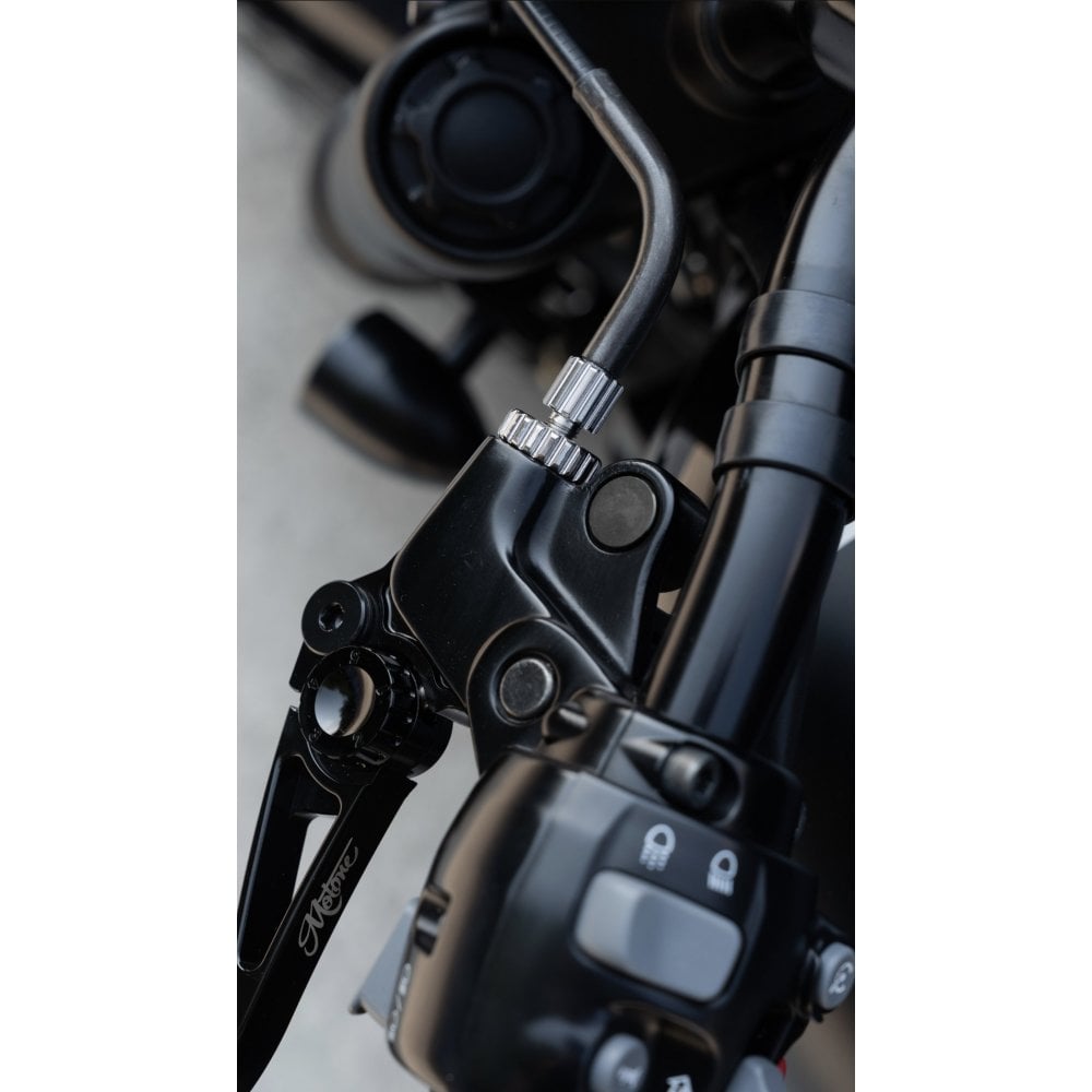 Precision machined out of Billet GR5 Titanium - these Clutch Cable adjusters fit all Triumphs and replace the stock units that are prone to rusting up. Finished here in Physical Vapor Deposition BLACK